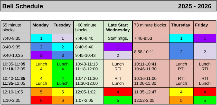 Der dritte September war mein erster Schultag. Bereits bevor ich das Schulgebäude betrete, sehe ich die gelben Schulbusse, eine rieisige Flagge der Vereinigten Staaten von Amerika, eine Flagge des Bundesstaats Maine und dutzende Schüler*innen, die eigenständig mit dem Auto auf dem großen Schüler*innenparkplatz parken. Meine Gasteltern müssen mich mit dem Auto zur Schule fahren, da ich in der Nachbarstadt lebe und mich dort kein Bus abholt. Ich betrete das Schulgebäude, welches von Schüler*innen, ausgenommen von den Seniors, bis zum Ende des Schultages nicht mehr verlassen werden darf. Zudem gibt es ausgenommen vom Lunch keine Pausen und man hat nur fünf Minuten Zeit zwischen den Stunden, um zum Raum der nächsten Lehrkaft zu gehen, denn es gibt keine Klassenräume, weshalb die Lehrkräfte ihre eigenen Räume haben. An der Morse High School sind die Längen der Stunden unterschiedlich. Diese sind so angeordnet, dass Schüler*innen passend in zwei Mittagspausen eingeordnet werden können und Fächer sich nicht überschneiden.